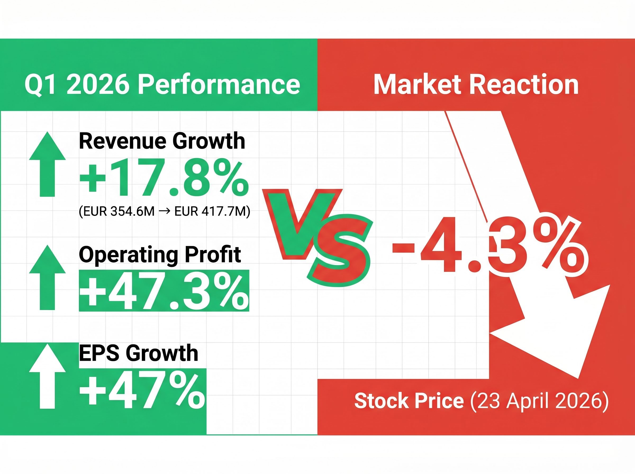 A pharmaceutical company delivers 17.8% revenue growth, 47.3% operating profit expansion, and raises full-year guidance, yet its stock drops 4.3% on announcement day. Orion Corporation’s Q1 2026 results, released on 23 April 2026, present exactly this contradiction. For investors tracking pharmaceutical equities, the Finnish company’s market reception demands explanation beyond headline metrics.