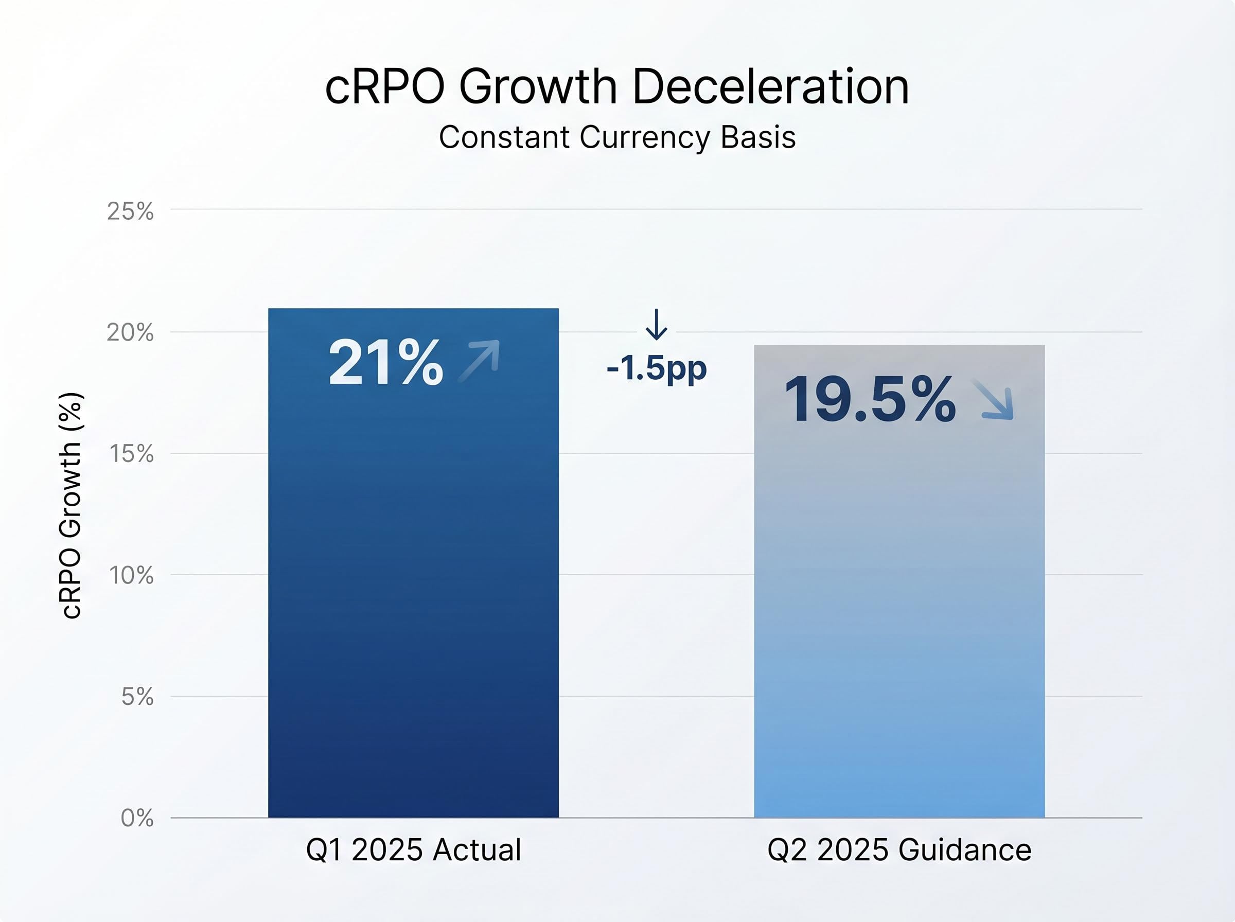 Then came the Q2 guidance. Management projected cRPO growth of 19.5% on a constant-currency basis, down from 21% in Q1. That deceleration landed hard.