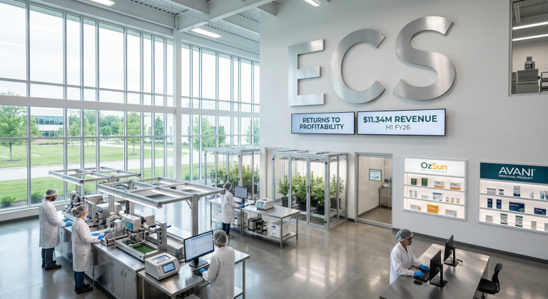 ECS Botanics Holdings Ltd (ASX: ECS) has reported ECS Botanics H1 FY26 profitability results, marking a return to the black after strategic repositioning over the past two years. The medicinal cannabis company delivered revenue of $11.34 million for the six months ended 31 December 2025, up 16.5% on the prior corresponding period of $9.73 million. More significantly, the company swung from a loss of $1.98 million to a profit before tax of $0.04 million, while achieving two consecutive quarters of positive operating cash flow compared to a $1.18 million outflow in the prior period.