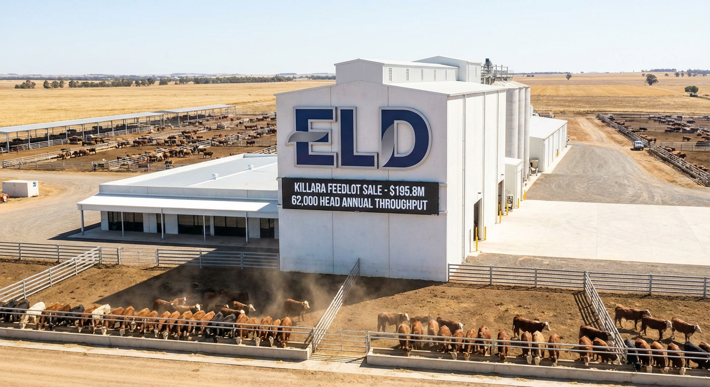 Elders Limited (ASX: ELD) has announced the Elders Killara Feedlot divestment to Australian Meat Group Pty Ltd (AMG) for total consideration of approximately $195.8 million. The transaction represents a strategic exit from an integrated beef production facility at a substantial premium to book value.