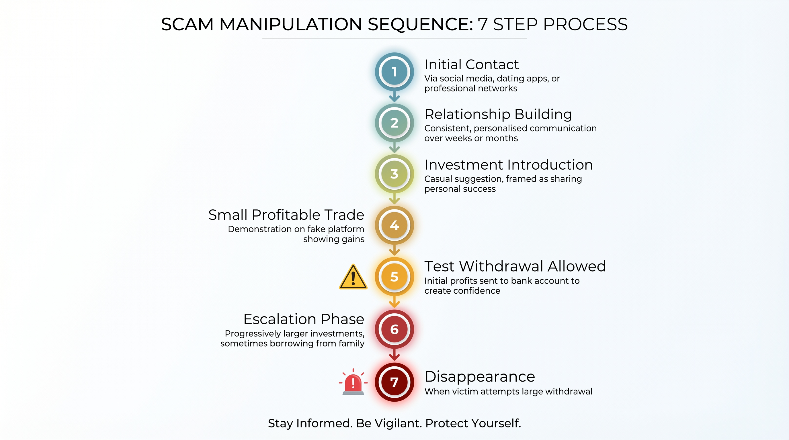 By the time victims reach this stage, recovery is typically impossible. The trust-building phase is when intervention can still prevent loss.