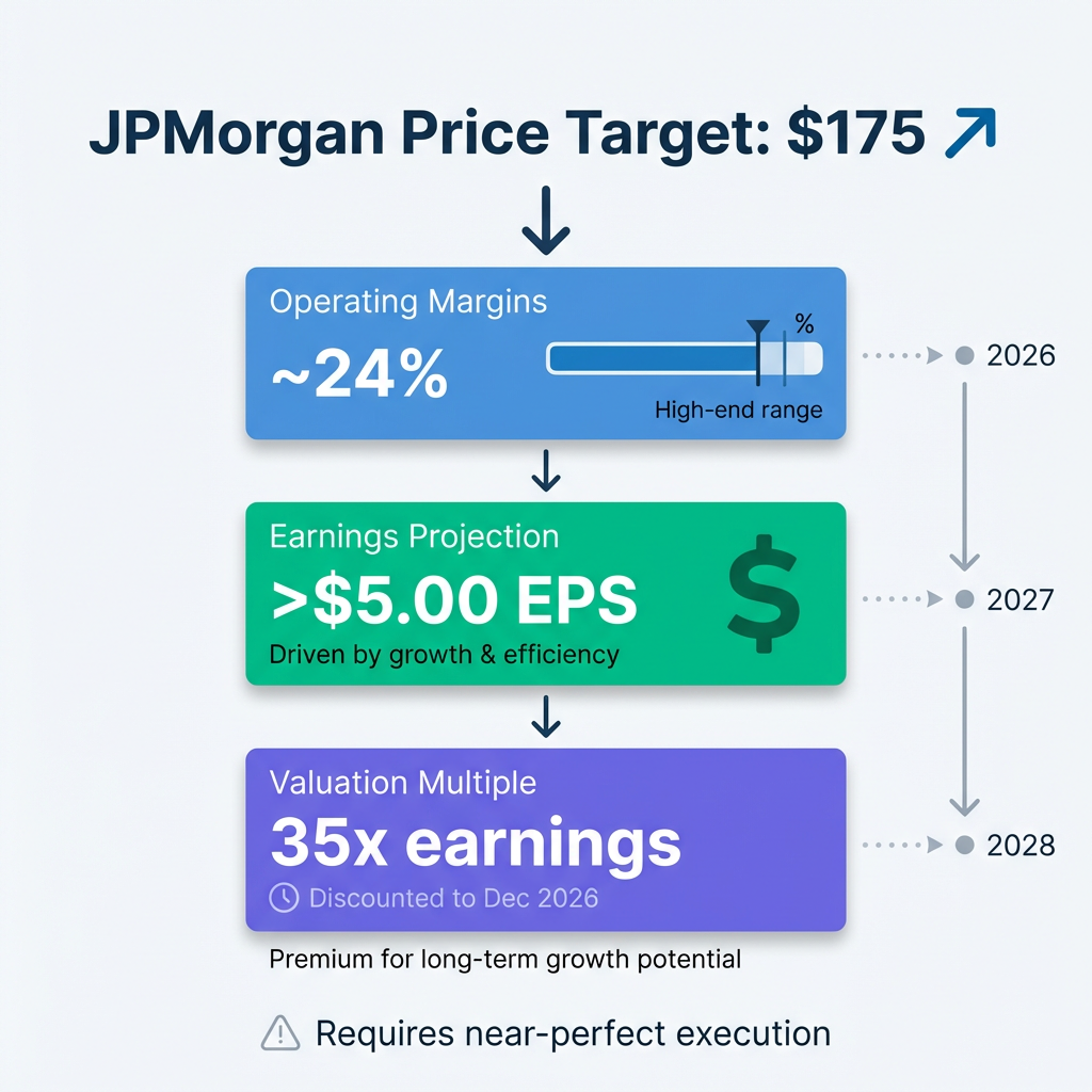 JPMorgan’s $175 price target is built on ambitious assumptions: approximately 24% operating margins, earnings above $5 per share, and a 35x earnings multiple discounted for time value to December 2026. Whilst these projections are achievable, they require near-perfect execution across product development, capacity expansion, and demand realisation. Any shortfall in optical segment revenue or margin compression from competitive pressures could undermine the valuation framework.