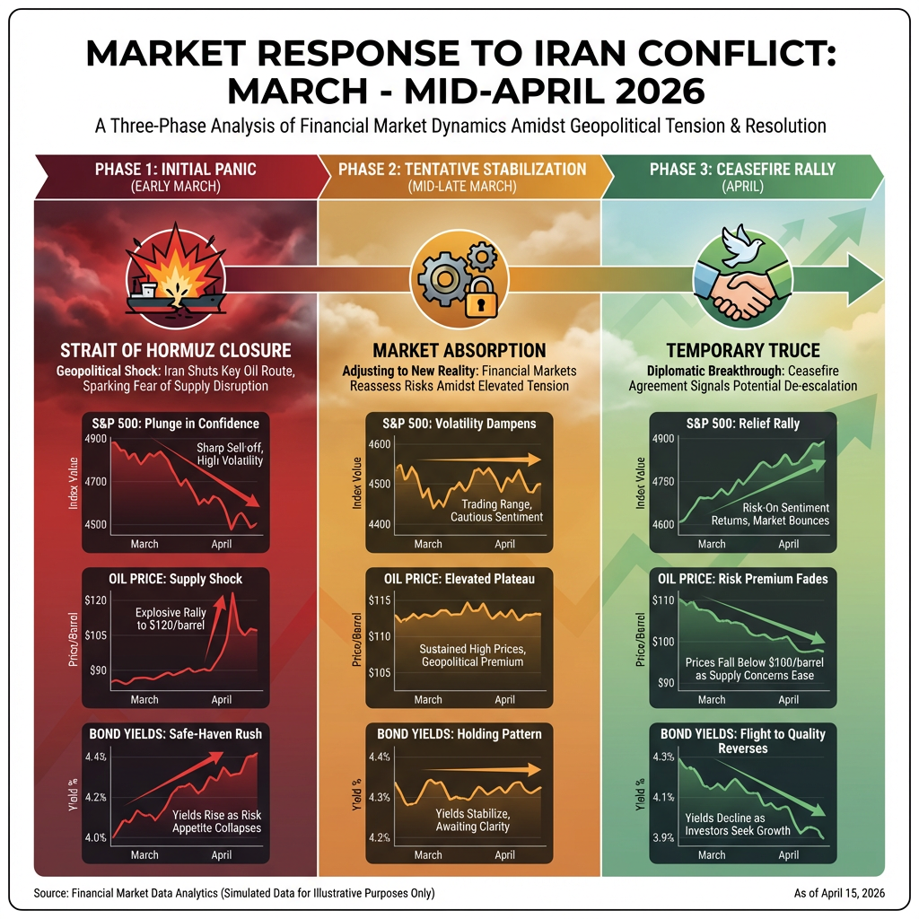 This counterintuitive market response raises a fundamental question: has investor resilience displaced genuine risk assessment, or do markets see pathways to normalisation that remain invisible in diplomatic channels? The Iran conflict market impact has unfolded through three distinct phases since early March 2026. Initial panic drove sharp risk-off moves and energy price spikes. A tentative stabilisation followed as markets absorbed the shock. Recent ceasefire developments sparked rallies driven by hedge fund repositioning rather than fundamental resolution.