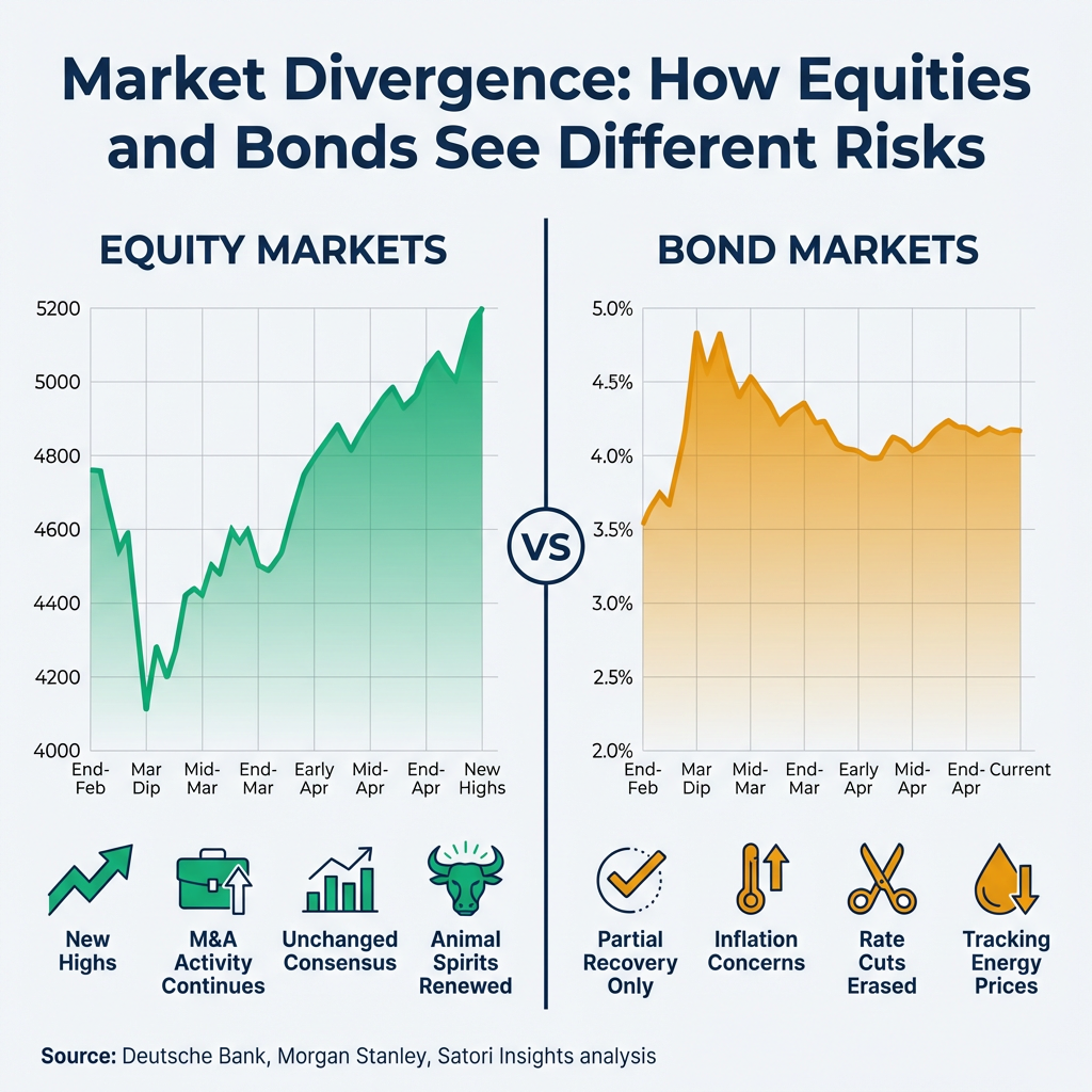 Jim Reid at Deutsche Bank identified bonds as showing greater sensitivity to Iran developments than equities. This divergence reflects multiple underlying dynamics rather than a single explanation.