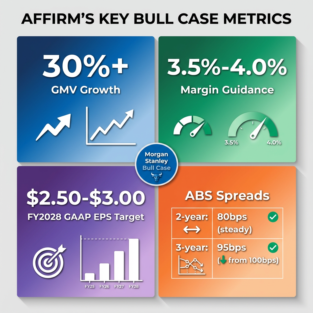- Morgan Stanley expects Affirm to sustain GMV growth above 30% while achieving fiscal 2028 GAAP EPS of $2.50-$3.00, a target the firm considers conservative.