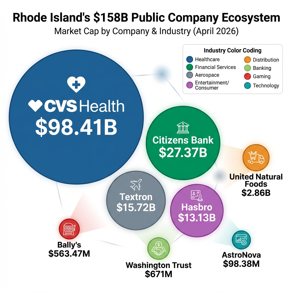 • Rhode Island's eight publicly traded companies hold a combined market capitalisation exceeding $158 billion, spanning consumer products, aerospace, healthcare, banking, food distribution, and gaming.