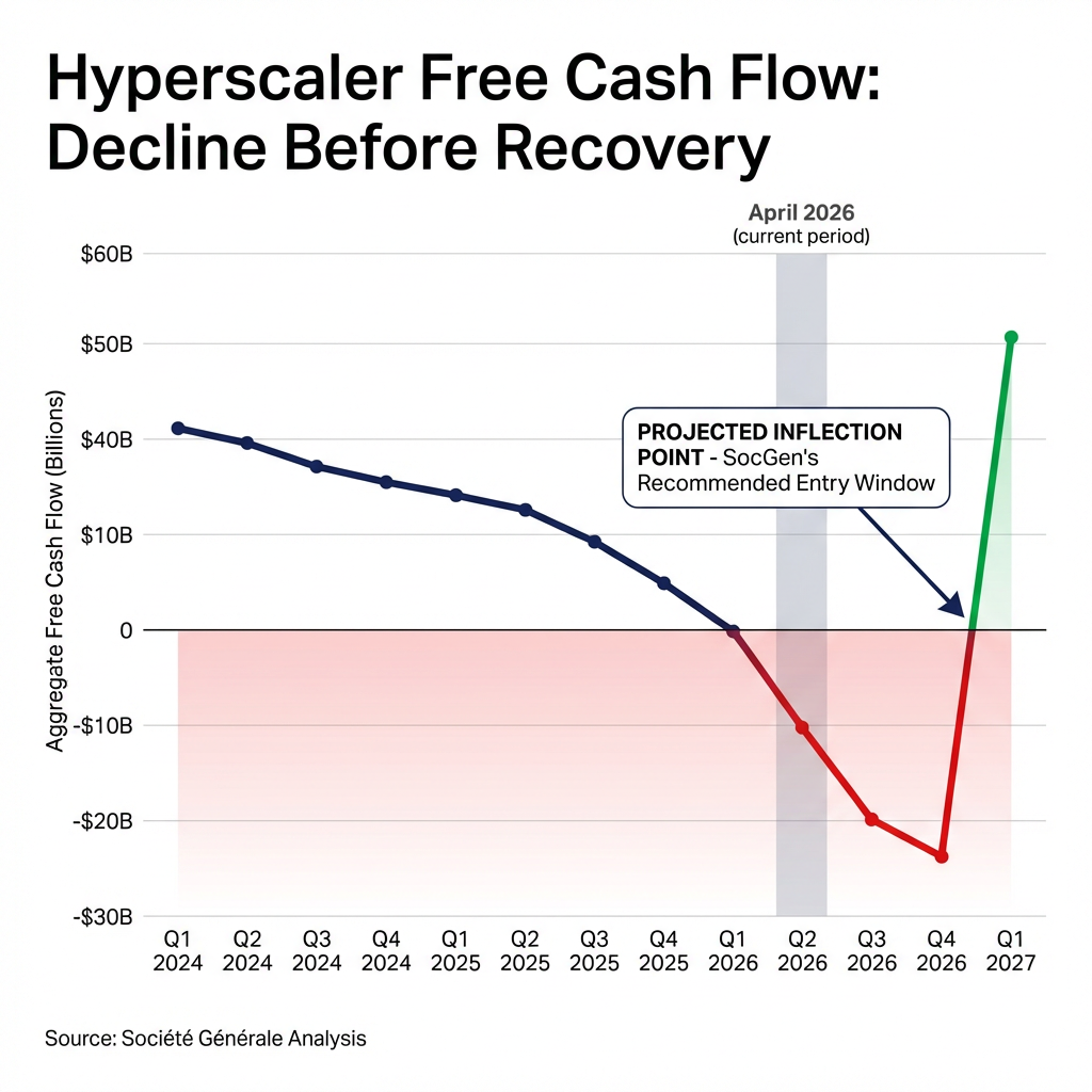 • Société Générale's Manish Kabra recommends against aggressive tech re-entry now, citing deteriorating hyperscaler free cash flow projected to turn negative by late 2026 before recovering in Q1 2027.