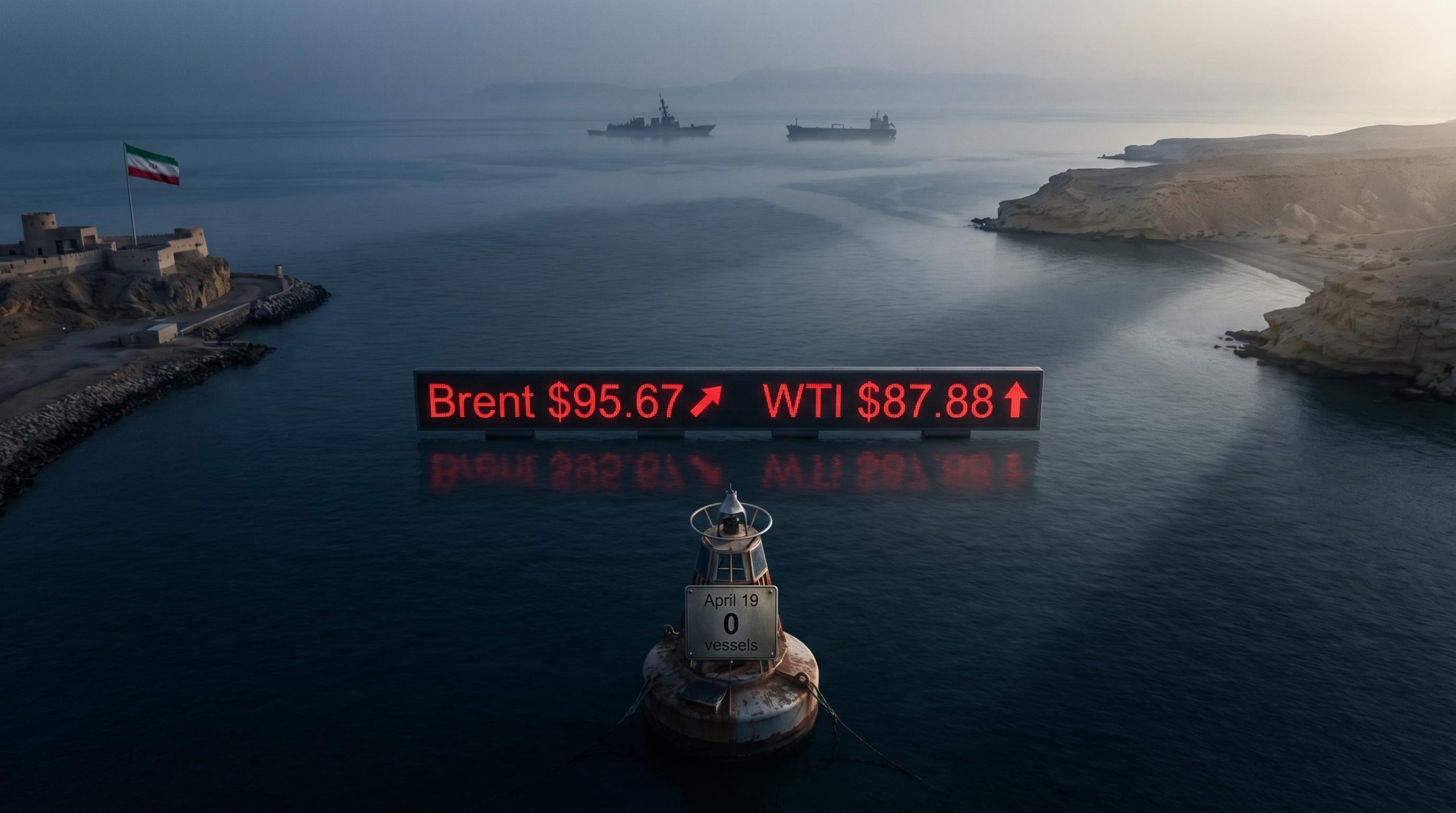 The Strait of Hormuz is a 21-mile-wide channel between Iran and Oman. Approximately 20-30% of global seaborne oil trade transits this waterway under normal conditions. On April 19, that figure was zero.